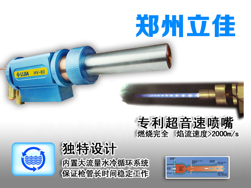 1. The spray gun structure based on design of principle of rocket generators flame high flow velocity;The output power and can be adjusted;