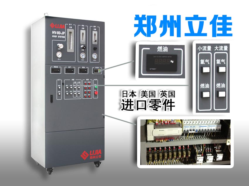 The company producedHV-80HVOF system upgrading of the third generation, the system is the use of aviation kerosene and high pressure oxygen in special high temperature and high speed combustion flame flow from the burning of the combustion chamber, the powder radial flow into flame, obtain high bonding strength, the density of high quality coating.