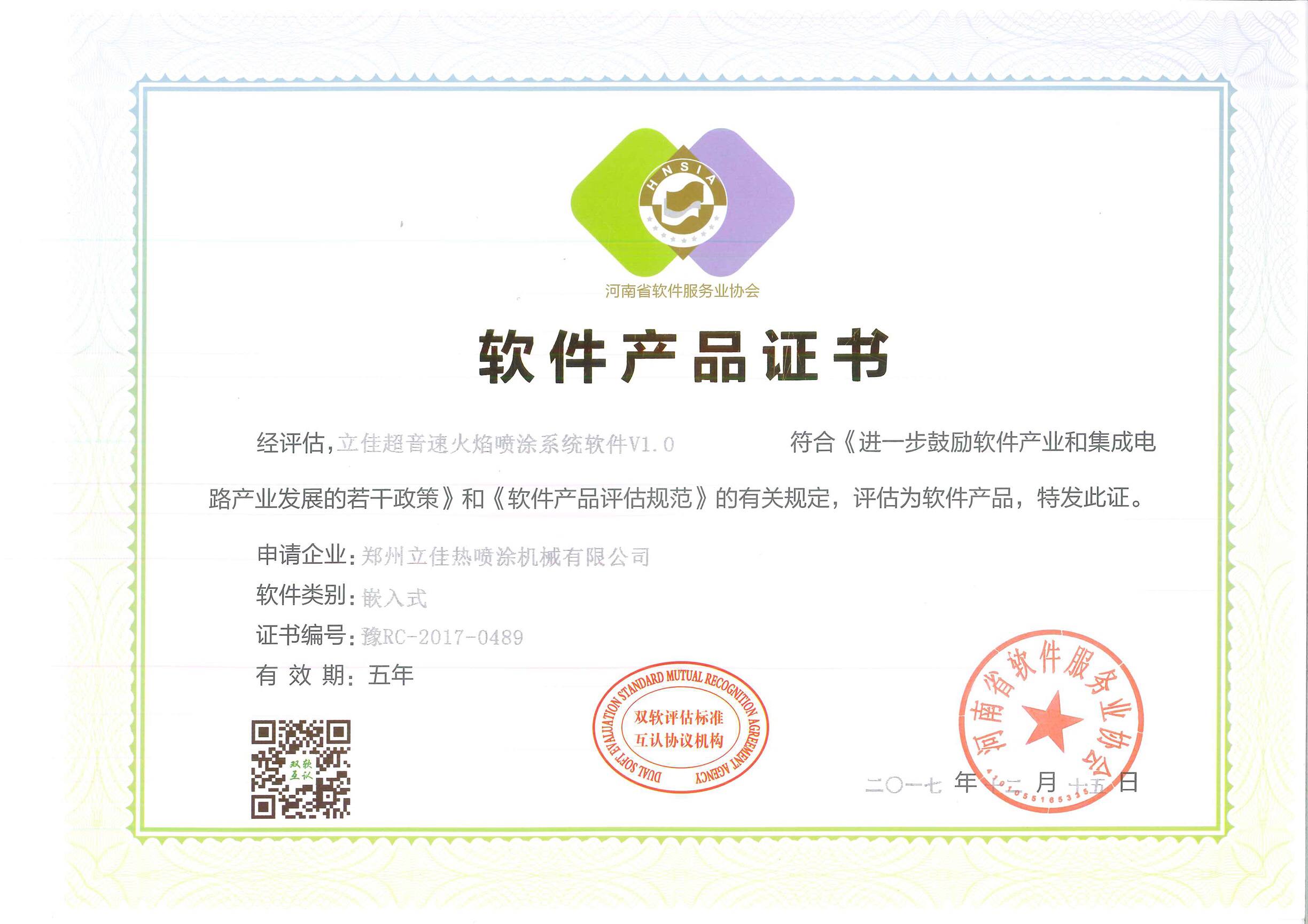鄭州羞羞视频网站熱噴塗機械有限公司順利通過了“雙軟企業”認證,是對我公司很大的鼓(gǔ)舞(wǔ),一方麵充分(fèn)肯定了(le)我公司多年來在智能設備中軟件開發(fā)方麵工作的不懈努力(lì),鼓勵公司繼續加快智能化熱噴塗設備的(de)腳步;另一方麵也說明我們在規範經營等方麵又邁上了一個新台階,充分證明了公司設備的智能化程度高,軟件產品的開發技術力量(liàng)、技術服(fú)務水平又(yòu)上了一個新的台階,也表明了我們(men)得到了政府、行(háng)業和客戶的認可,這是對我們曆史成績的(de)肯定,更(gèng)是對今後工作的巨大(dà)推動,公司可以利用稅收優惠加大研發的投入,以(yǐ)取得更大(dà)的發(fā)展,以便很(hěn)好的(de)開展業務。