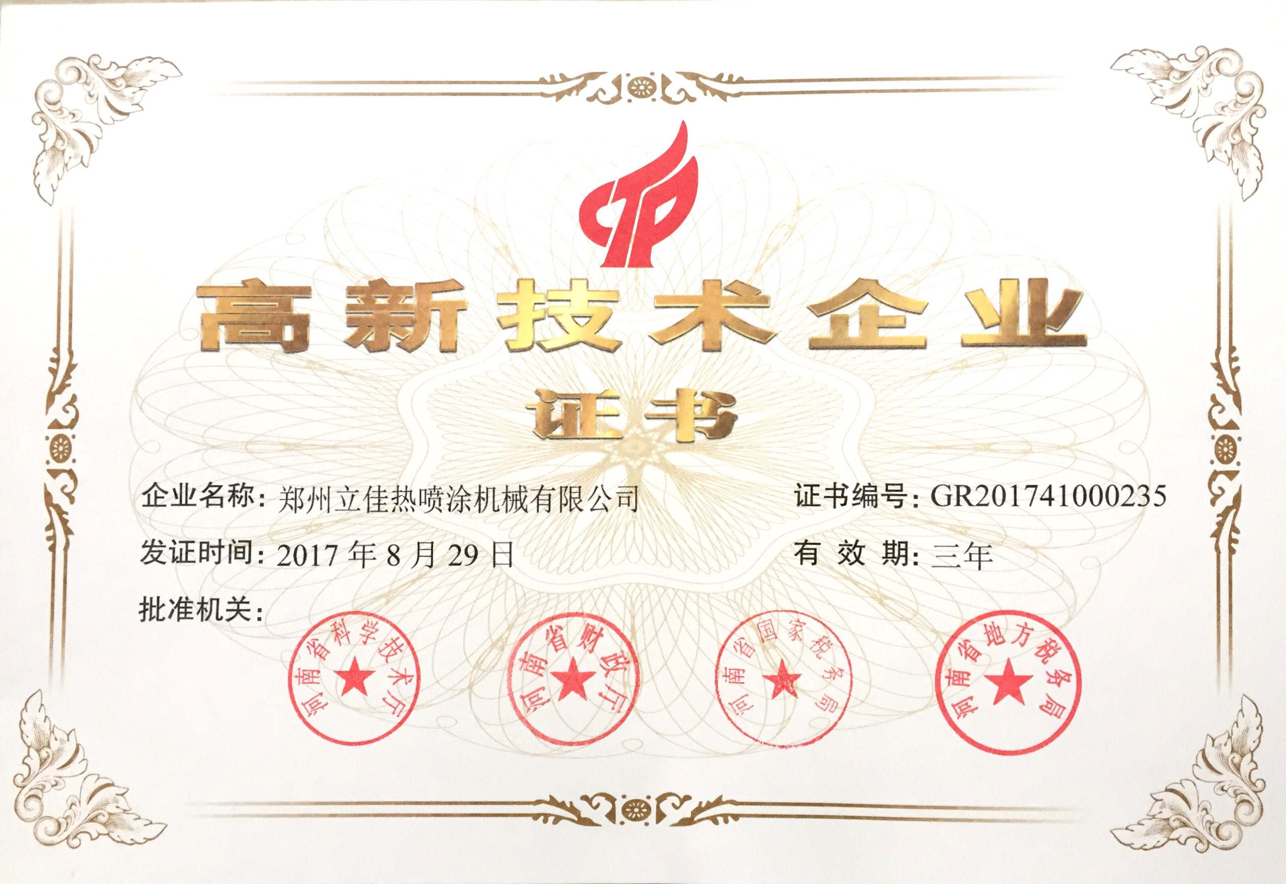 鄭州羞羞视频网站熱噴(pēn)塗機械有限公司本月取得(dé)了高新技術企業認證,公司在超音速噴塗設備和加工服務的核心技術領域(yù)內取得了多項研發成果,並積極運用在各(gè)行業當中。